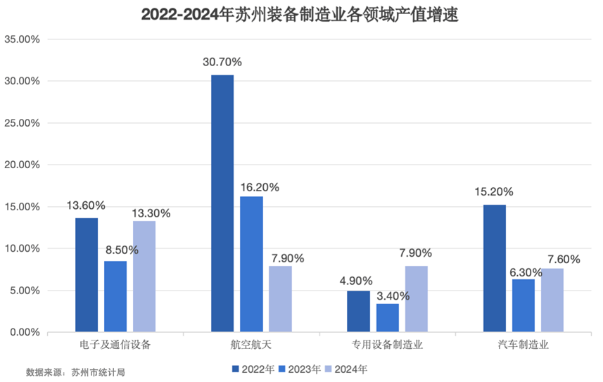 苏州的装备制造已不再靠“单点大项目”撑场面,而是围绕“工业母机+机器人+汽车及零部件+智能产线”等板块,形成从研发到制造、从零部件到整机、从工厂到场景的链式协同,本地配套能力随之增强。2025年1—11月,装备制造业完成产值14,663.5亿元,并与电子信息、新材料一起构成苏州“三个万亿级产业”,多极支撑的产业格局更加稳固。